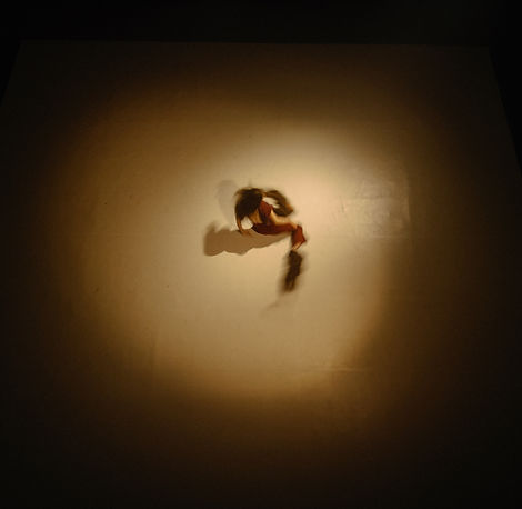Anotation: This performative solo was created thanks to a strong inspiration from a series of photographs where the ravens show the different emotional states that through their geometrical forms and draws, have allowed me to create, embody and transform into my interpretational performance. I imagined being a creature observed through a camera lens, to pass through different states of being through a sensitive body, but away from the usual human structure.